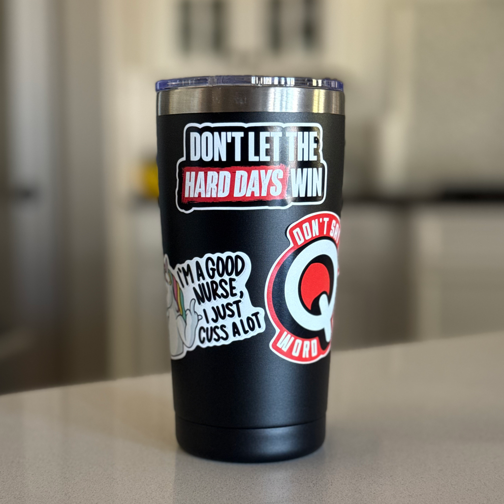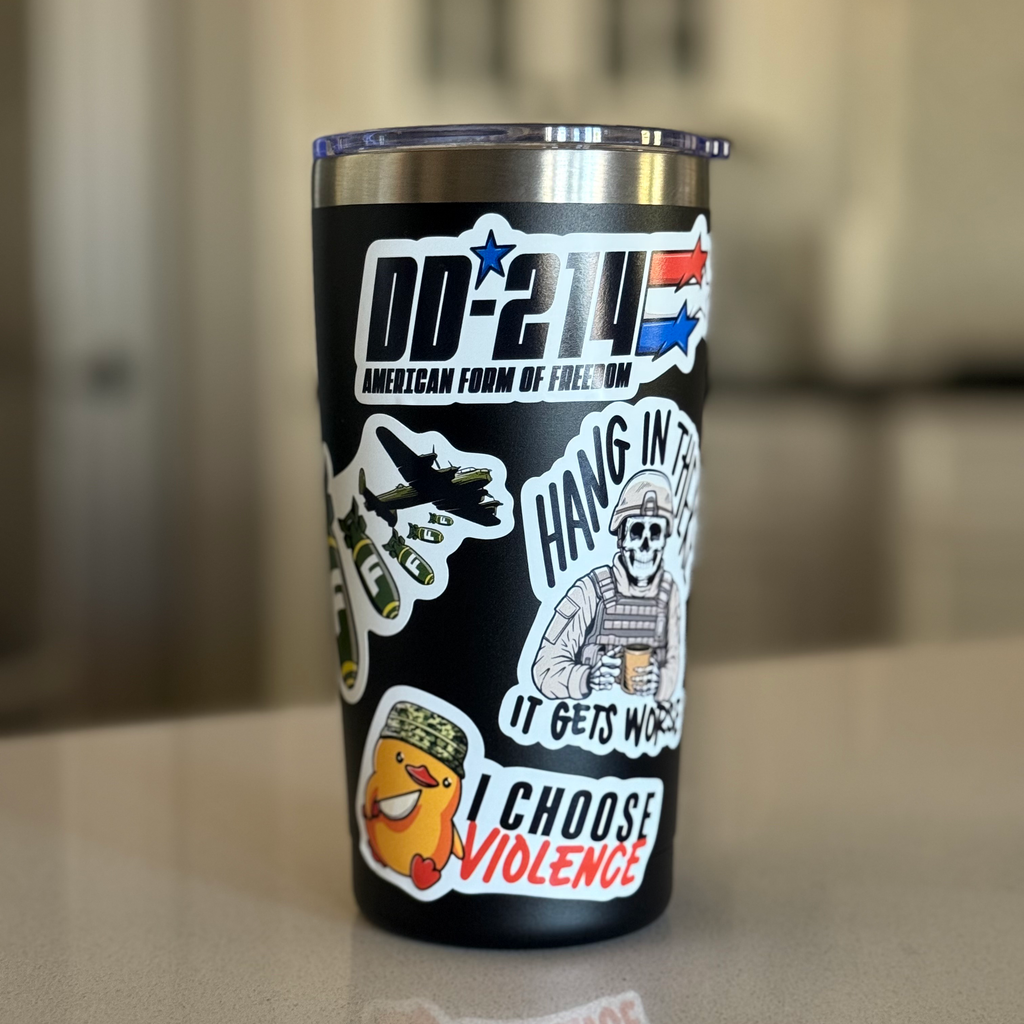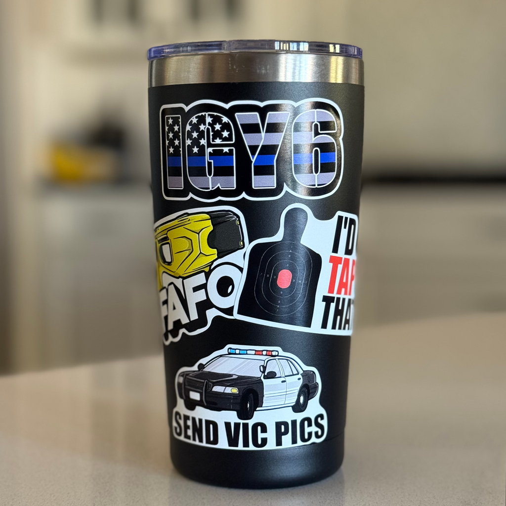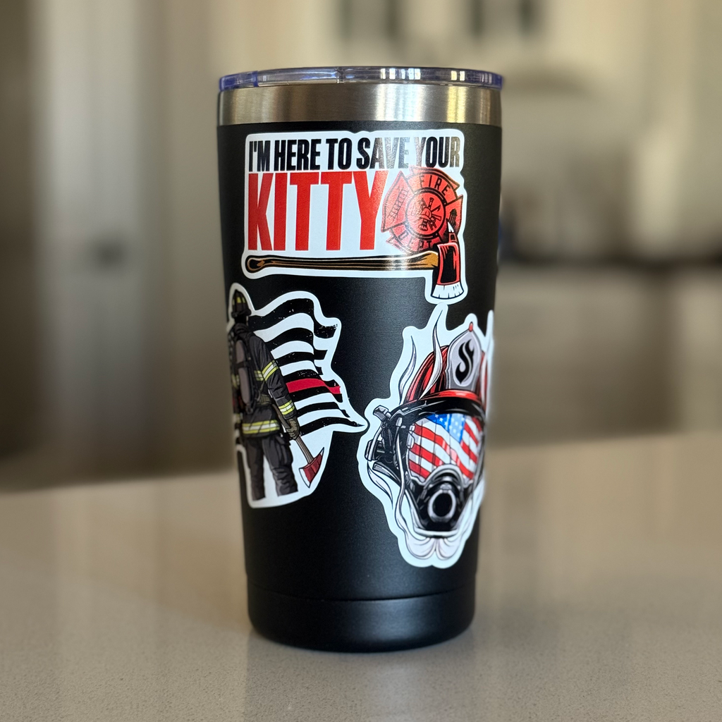 The ultimate way to kickstart your Sticker Fire collection. The Sticker Fire Starter Kit comes with a double-walled 20oz insulated tumbler made from premium stainless steel. It’s built to handle whatever your day throws at it. Rust proof, chip resistant, and easy to clean. The sleek black finish gives it a tough, no-nonsense look that fits right in at the station or on the job.